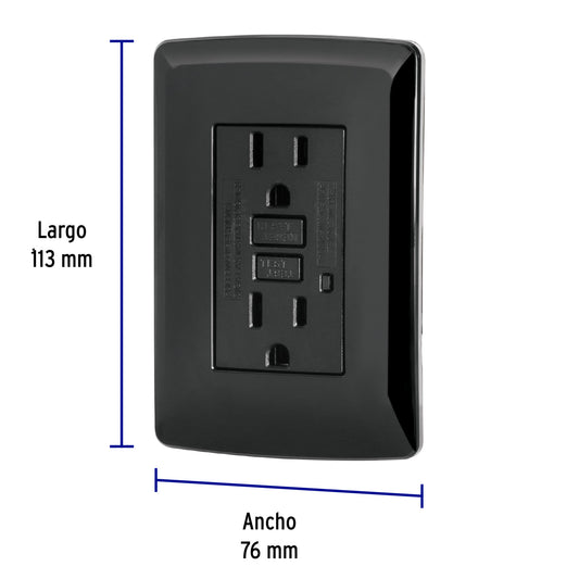 Proveedor:VolteckContacto dúplex falla a tierra GFCI, negro, línea Italiana Caja con 3, 47589Placa de ABS, contacto de polipropileno y policarbonato Con interruptor de circuíto por falla a tierra GFCI (ICFT) LED indicador...