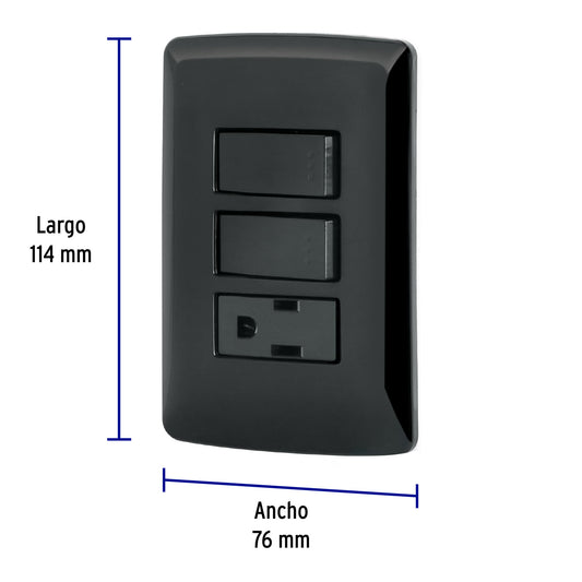 Proveedor:VolteckPlaca armada, 2 interruptores sencillos,negro,línea Italiana Caja con 3, 47597Fabricada en ABS, polipropileno 2 Interruptores sencillos con retardante a la flama para mayor seguridad