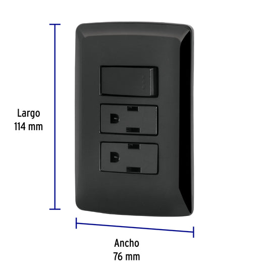 Proveedor:VolteckPlaca armada contacto e interruptor, negro, línea Italiana Caja con 3, 47591Fabricada en ABS, polipropileno y policarbonato 1 Interruptor sencillo y 1 contacto con retardante a la flama para mayor seguridad