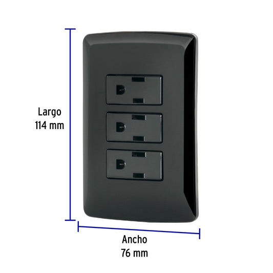 Proveedor:VolteckPlaca armada 3 contactos aterrizados, negro, línea Italiana Caja con 3, 47594Placa de ABS, contactos de polipropileno y policarbonato 3 Contactos con retardante a la flama para mayor seguridad
