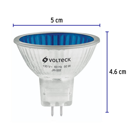Proveedor:VolteckLámpara de halógeno azul 50 W tipo MR16 en caja, Volteck Caja con 6, 47249Cuerpo de vidrio con cubierta Direccional Para uso en joyerías, boutiques, museos, teatros y más