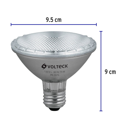 Proveedor:VolteckLámpara de halógeno 75 W tipo PAR 30, en caja, Volteck Caja con 6, 47248Base de metal y pantalla transparente Direccional Para uso en oficinas, restaurantes, museos, jardines y más