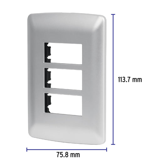 Proveedor:VolteckPlaca 3 módulos de ABS, línea italiana, color plata, Volteck Caja con 12, 46399Cuerpo y chasis fabricados en ABS No se necesita desmontar para colocar artefactos Para evitar dejar expuestos los tomacorrientes, proteger su...