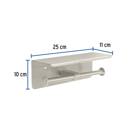 Proveedor:FosetPortarrollo cromo con soporte para celular, Foset Riviera Caja con 2, 46354Frabricado en acero inoxidable con acabado cromo Repisa porta celular