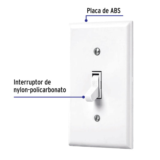 Proveedor:VolteckPlaca armada interruptor sencillo, línea Standard, blanco Caja con 3, 45952Placa de ABS, contacto e interruptor en nylon-policarbonato Con retardante a la flama para mayor seguridad