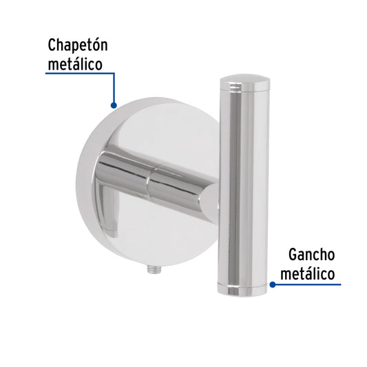 Proveedor:FosetGancho sencillo metálico acabado cromo, Foset Túbig Caja con 6, 45961Metálico Con sistema de montaje para semiempotrar Incluye llave allen, taquetes y tornillería para su instalación