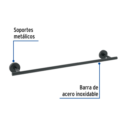 Proveedor:FosetToallero de barra metálico acabado negro, Foset Túbig Caja con 6, 45972Barra de acero inoxidable y soportes metálicos Con sistema de montaje para semiempotrar Incluye llave allen, taquetes y tornillería para...
