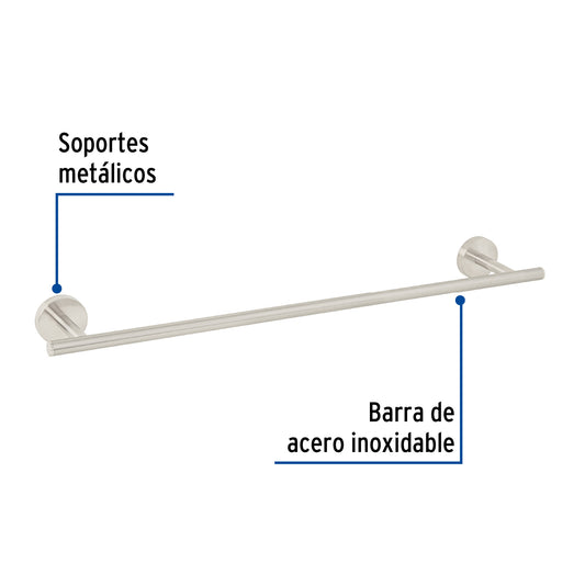 Proveedor:FosetToallero de barra metálico acabado satín, Foset Túbig Caja con 6, 45971Barra de acero inoxidable y soportes metálicos Con sistema de montaje para semiempotrar Incluye llave allen, taquetes y tornillería para...