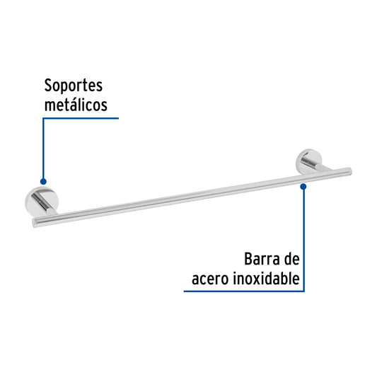 Proveedor:FosetToallero de barra metálico acabado cromo, Foset Túbig Caja con 6, 45970Barra de acero inoxidable y soportes metálicos Con sistema de montaje para semiempotrar Incluye llave allen, taquetes y tornillería para...