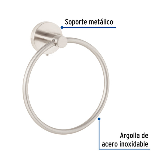 Proveedor:FosetToallero argolla metálico acabado satín, Foset Túbig Caja con 6, 45974Argolla de acero inoxidable y soporte metálico Con sistema de montaje para semiempotrar Incluye llave allen, taquetes y tornillería para...