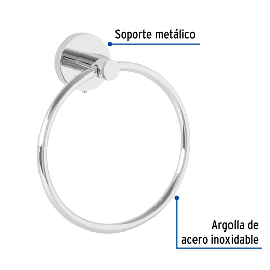 Proveedor:FosetToallero argolla metálico acabado cromo, Foset Túbig Caja con 6, 45973Argolla de acero inoxidable y soporte metálico Con sistema de montaje para semiempotrar Incluye llave allen, taquetes y tornillería para...