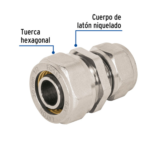 Proveedor:FosetCople de compresión para PEALPE, 1/2', Foset Caja con 4, 45913Cuerpo de latón niquelado Resistencia a la corrosión Conexión por compresión, sin soldadura Compatible con tubería multicapa PE-AL-PE para gas...