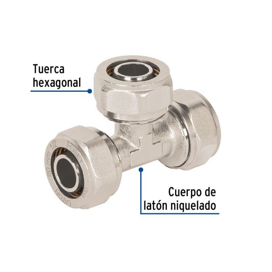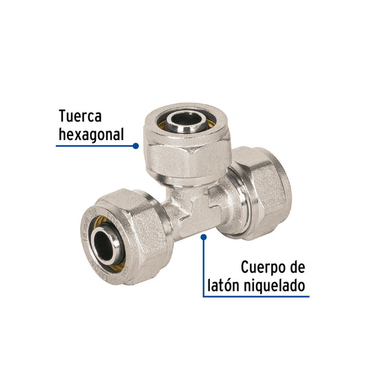 Proveedor:FosetTee para PEALPE, 3/4', Foset Caja con 2, 45929Cuerpo de latón niquelado Resistencia a la corrosión Conexión por compresión, sin soldadura Compatible con tubería multicapa PE-AL-PE para gas...