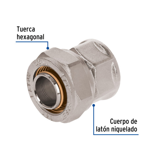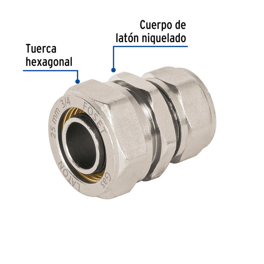 Proveedor:FosetCople de compresión para PEALPE, 3/4', Foset Caja con 2, 45914Cuerpo de latón niquelado Resistencia a la corrosión Conexión por compresión, sin soldadura Compatible con tubería multicapa PE-AL-PE para gas...
