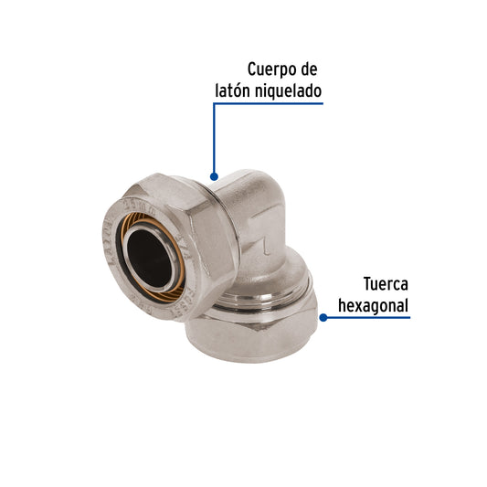 Proveedor:FosetCodo 90° para PEALPE, 3/4', Foset Caja con 2, 45920Cuerpo de latón niquelado Resistencia a la corrosión Conexión por compresión, sin soldadura Compatible con tubería multicapa PE-AL-PE para gas...
