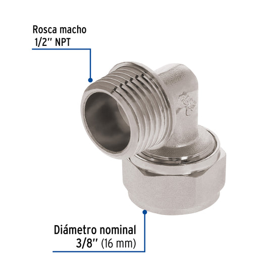 Proveedor:FosetCodo 90° para PEALPE, 3/8', con rosca macho, Foset Caja con 4, 45924Cuerpo de latón niquelado Resistencia a la corrosión Conexión por compresión, sin soldadura Compatible con tubería multicapa PE-AL-PE para gas...