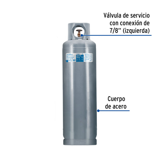 Proveedor:FosetCilindro portátil para gas LP, 20kg (44lb) Foset, 45890Cuerpo de acero con recubrimiento de pintura electrostática, resistente a la corrosión Válvula de servicio con conexión de 7/8" (izquierda)...
