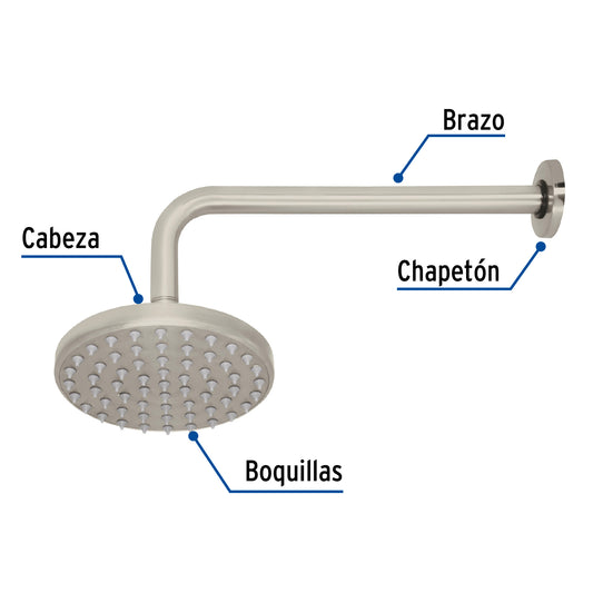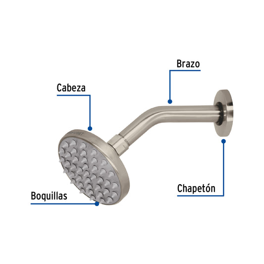 Proveedor:FosetRegadera satín 6' plato redondo, con brazo, Foset Element, 45576Cabeza de latón para máxima duración Incluye brazo de 30 cm de pared y chapetón de latón Para mayor flujo de...