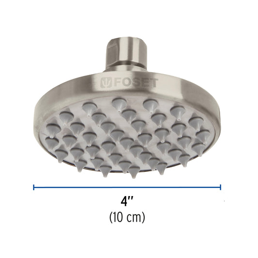 Proveedor:FosetRegadera satín 4' plato redondo, sin brazo, Foset Element, 45581Cabeza de latón para máxima duración Para mayor flujo de agua se puede retirar el reductor Ahorradora en baja presión...