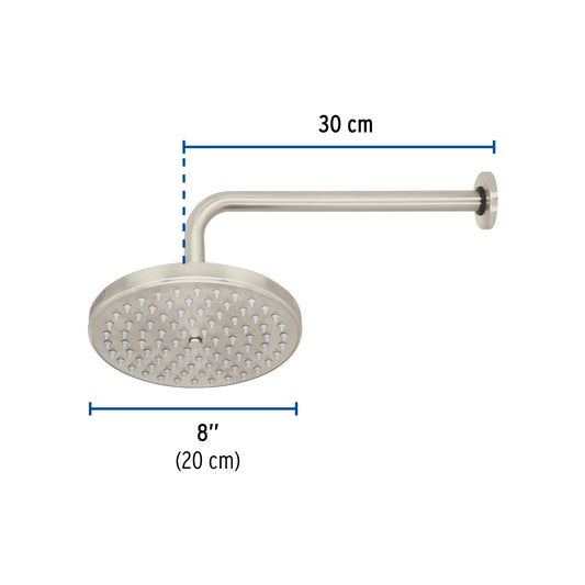 Proveedor:FosetRegadera satín 8' plato redondo, con brazo, Foset Element, 45577Cabeza de latón para máxima duración Incluye brazo de 30 cm de pared y chapetón de latón Para mayor flujo de...