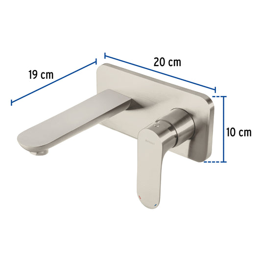 Proveedor:FosetMonomando satín de pared para lavabo, Foset Riviera, 45178Cuerpo de latón para máxima duración Maneral metálico Cartucho cerámico de suave y fácil apertura