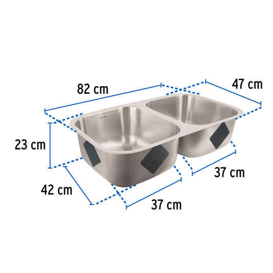 Proveedor:FosetTarja de submontar 82x47x23cm doble tina, Foset Riviera, 45176Fabricada de acero inoxidable 304 para mayor durabilidad y resistencia a la corrosión Acabado satín Tinas con mayor profundidad que...