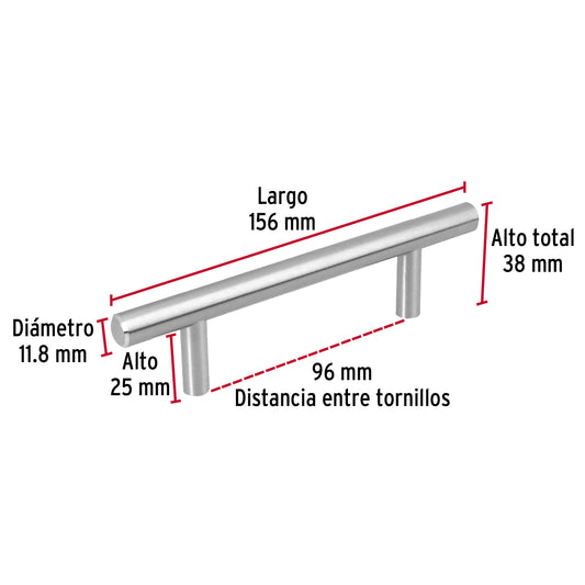 Proveedor:HermexJaladera de acero, 96 mm estilo 'Cilindro', níquel satinado Caja con 12, 43828Fabricada en acero sólido con acabado níquel satinado Para uso en carpintería Ideal para instalar en puertas y cajones, para mubles de madera ...