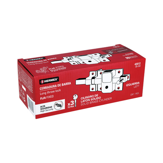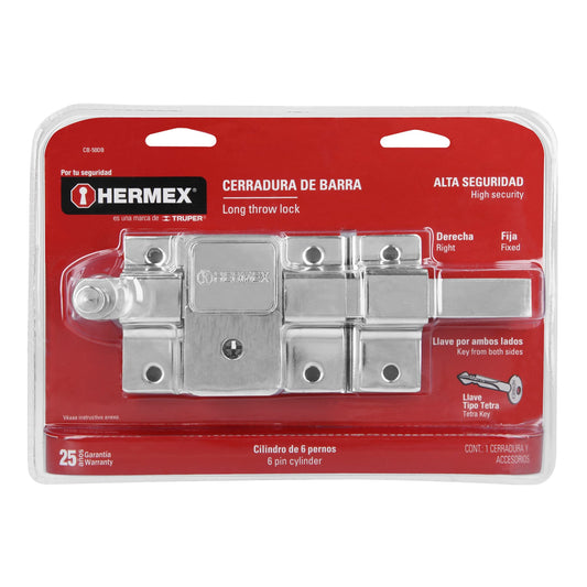 Proveedor:HermexCerradura de barra fija, llave tetra, izquierda, Hermex Caja con 3, 43512Cilindro de latón sólido con 6 pernos para mayor resistencia contra robos Cerradura de barra fija, la barra se acciona al girar...