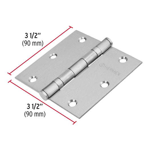 Proveedor:HermexBisagra cuadrada 3-1/2' acero inox, cabeza redonda, Hermex Caja con 10, 43223Fabricada en acero inoxidable con acabado satinado pulido Perno suelto con cabeza redonda Con baleros para puertas pesadas 30% Mayor espesor...