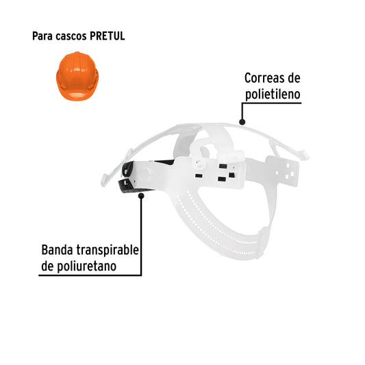 Proveedor:PretulSuspensión para cascos, ajuste por intervalos, Pretul Caja con 4, 20631Para cascos Pretul 4 Puntos de anclaje Soporte plástico Correas de polietileno Banda transpirable de poliuretano