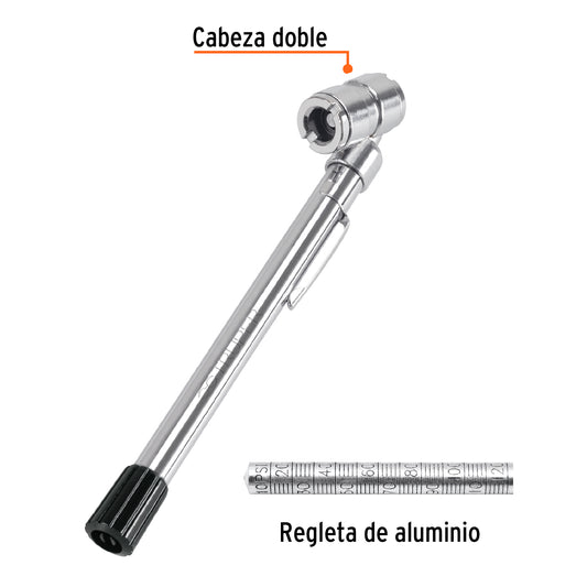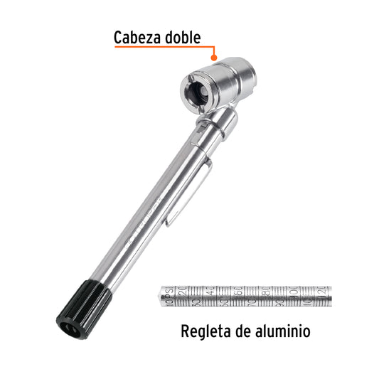 Proveedor:TruperCalibrador de presión 50 psi cabeza doble, Truper Caja con 12, 19098Rango de medición 6 - 50 psi Regleta de aluminio Permite fácil acceso a válvulas con dirección interna o externa Clip tipo pluma...