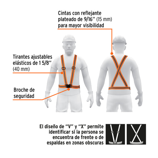 Proveedor:TruperChaleco elástico tipo arnés naranja con reflejante, Truper Caja con 3, 15565Tirantes elásticos ajustables de 15/8" (40 mm) Cinta con reflejante plateado de 9/16" (15 mm) para mayor visibilidad Broche de seguridad...