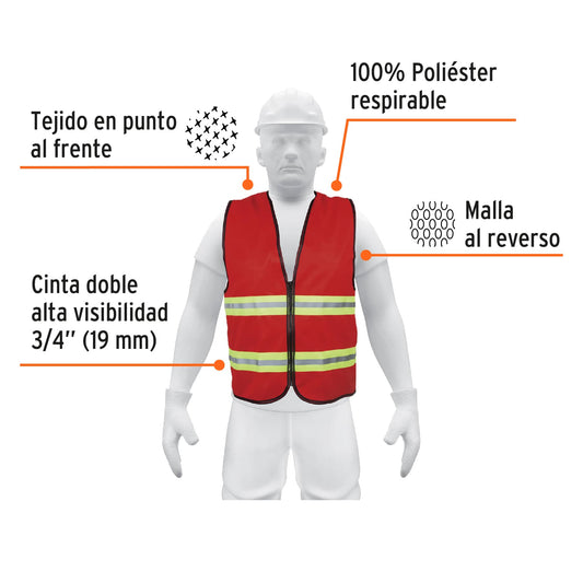 Proveedor:TruperChaleco de seguridad rojo alta visibilidad con cierre Caja con 5, 15417100% Poliéster respirable Cinta reflejante doble de alta visibilidad 3/4" (19 mm)