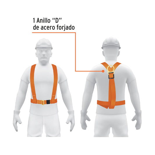 Proveedor:TruperArnés de pecho con 1 anillo, Truper Caja con 2, 14431Cinta 100% poliéster Máxima carga de trabajo: 140 kg ( incluyendo herramienta) 1 Anillo “D” de acero forjado (en espalda)...