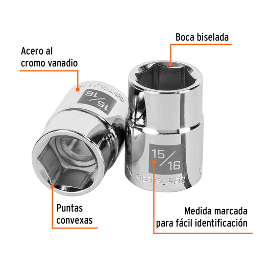 Proveedor:TruperDado de 15/16', 6 puntas, cuadro 3/4', Truper Caja con 3, 13823Fabricados en acero al cromo vanadio con acabado pulido espejo resistente a la oxidación y de fácil limpieza Sistema de...