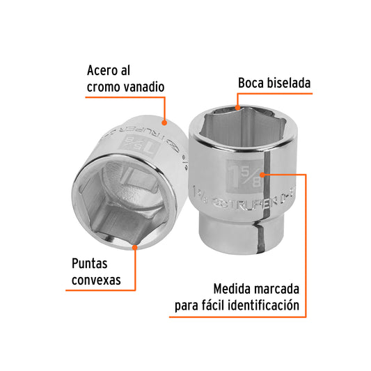 Proveedor:TruperDado de 2', 6 puntas, cuadro 3/4', Truper Caja con 3, 13840Fabricados en acero al cromo vanadio con acabado pulido espejo resistente a la oxidación y de fácil limpieza Sistema de...