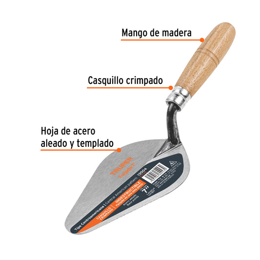 Proveedor:TruperCuchara para albañil 7' forjada tipo Centroamericana, Truper Caja con 3, 13004Hoja con espesor desvanecido de zanco a punta para flexibilidad y ligereza Fabricada en acero aleado y templado para máxima...
