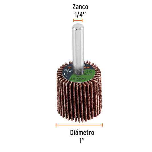 Proveedor:TruperRueda flap de 1', grano 60, Truper Caja con 6, 13033Fabricada en óxido de aluminio Respaldo de algodón con gran flexibilidad Ideal para lugares de difícil acceso Para trabajar sobre...