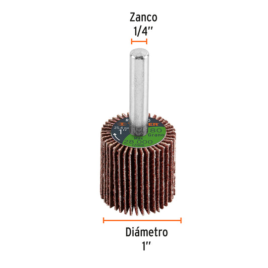 Proveedor:TruperRueda flap de 1', grano 80, Truper Caja con 6, 13034Fabricada en óxido de aluminio Respaldo de algodón con gran flexibilidad Ideal para lugares de difícil acceso Para trabajar sobre...