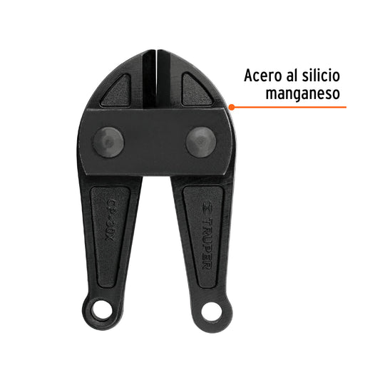 Proveedor:TruperCuchillas de repuesto para cortapernos 36', Truper, 12841Cuchillas ajustables de acero al silicio manganeso, 2X más resistente y duradero que el acero al cromo molibdeno Corte central...
