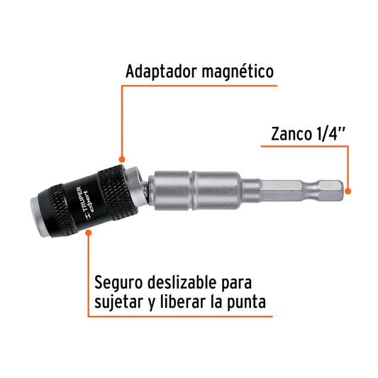 Proveedor:ExpertAdaptador de 75 mm magnético para puntas, Expert Caja con 6, 11873Fabricada en acero al cromo vanadio 2X más resistente al desgaste que las de acero al carbono Seguro deslizable para sujetar y...