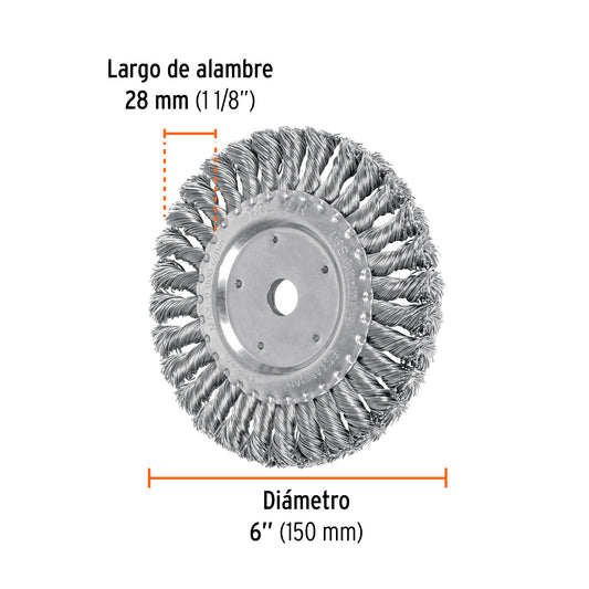 Proveedor:TruperCarda circular 6' alambre trenzado, eje 5/8'-11, Truper Caja con 4, 11597Fabricada en acero al carbono Acabado áspero Compatible con esmeriladoras Truper® y Pretul® Para espacios reducidos Limpieza de metales y cordones de soldadura...