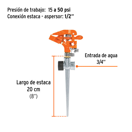 Proveedor:TruperAspersor metálico 11' dos vías, estaca metálica, Truper Caja con 6, 10321Cabeza de aspersor metálico de pulsaciones con clip de límite de riego Estaca metálica