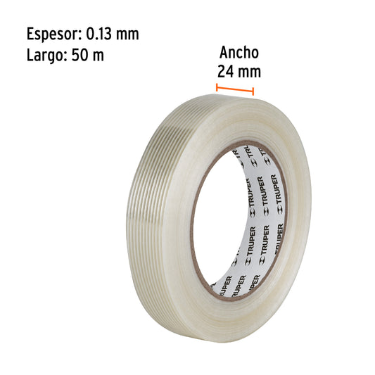 Proveedor:TruperCinta flejadora con filamentos 24mm x 50 m, transparente Caja con 6, 103029Adhesivo de caucho sintético de adhesión instantánea Resistencia a la tensión, abrasión, humedad y al corte Elongación de 7% antes...