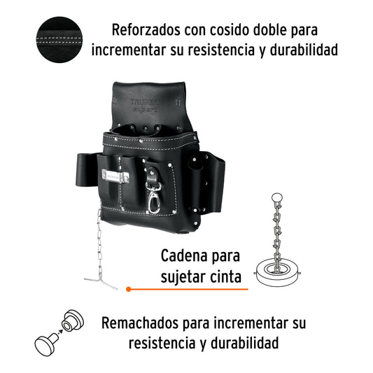 Proveedor:ExpertPorta herramientas de carnaza, 13 compartimentos, Expert, 101787Cuero curtido flexible de alta calidad, resistente a la humedad Reforzado con cosido doble para incrementar su resistencia y durabilidad...