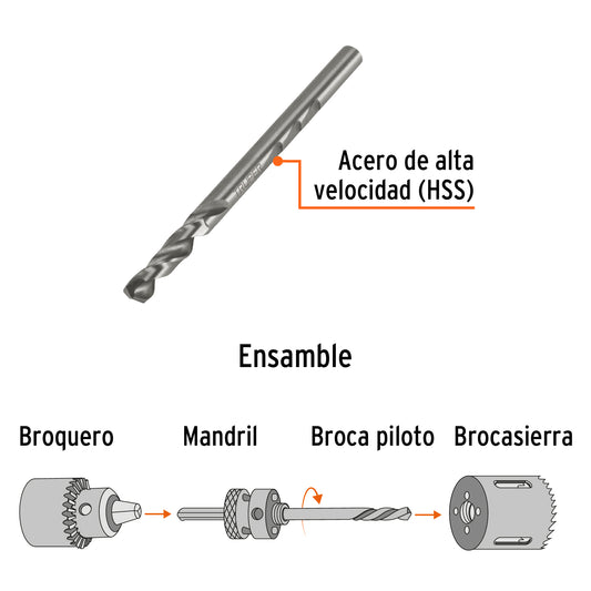 Proveedor:ExpertBroca piloto de 1/4' para brocasierras bimetálicas, Expert Caja con 6, 101580Broca HSS (Acero de alta velocidad) Ángulo de punta 135° Para uso con mandril modelos MAND-3/8 y MAND-7/16 marca Truper®...