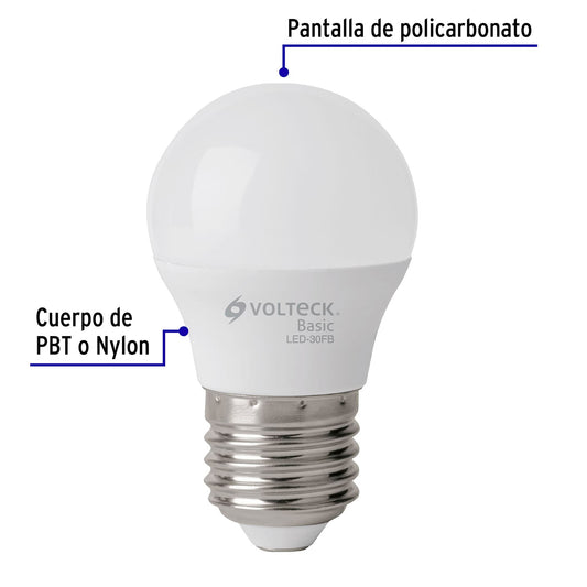 Proveedor:VolteckLámpara LED G45 3 W (equiv. 25 W), luz cálida, caja, Basic Caja con 10, 28058Hasta 88% de ahorro, menor consumo de energía que las incandescentes Cuerpo de PBT y pantalla de policarbonato Encendido instantáneo...