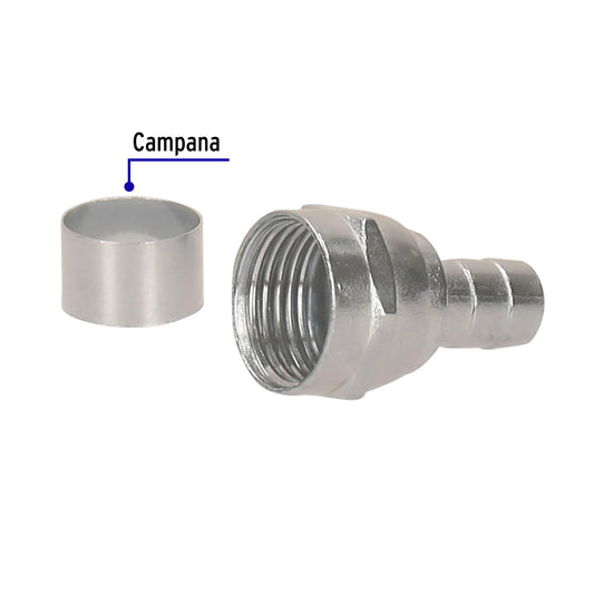 Proveedor:VolteckBolsa con 4 conectores coaxiales RG 6 tipo campana, Volteck Caja con 10, 48480Metálico con acabado niquelado Anillo suelto (campana) Para instalaciones de antena, televisión satelital o cable