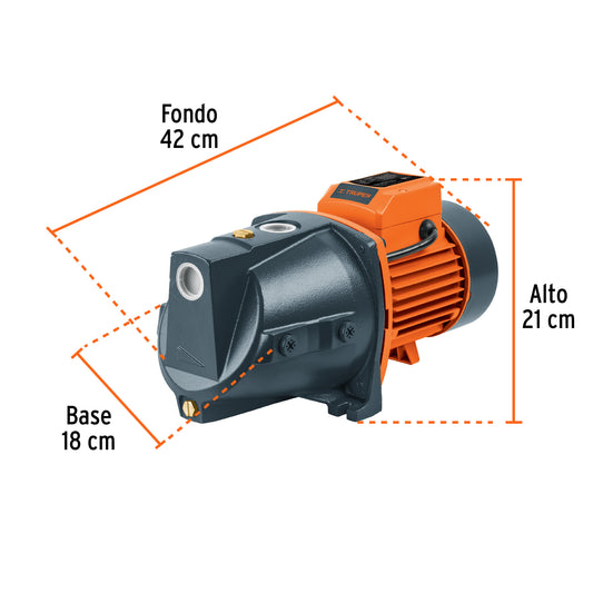 Proveedor:TruperBomba eléctrica tipo jet para agua, hierro, 1/2 HP, Truper, 12407Diseñadas para bombear agua limpia a una presión constante, para abastecer agua a casas - habitación desde tinacos y cisternas...