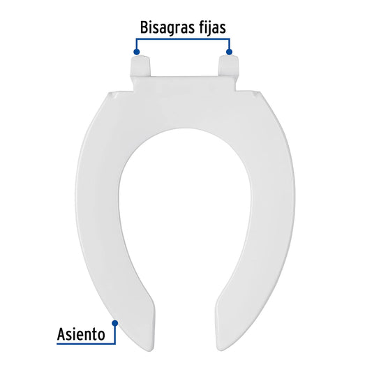 Proveedor:FosetAsiento alargado sin tapa para taza fluxómetro, blanco,FOSET, 49368Asiento de polipropileno Resistente al astillamiento y a la corrosión Bisagras fijas Tornillos y tuercas de ajuste rápido, resistentes a la...
